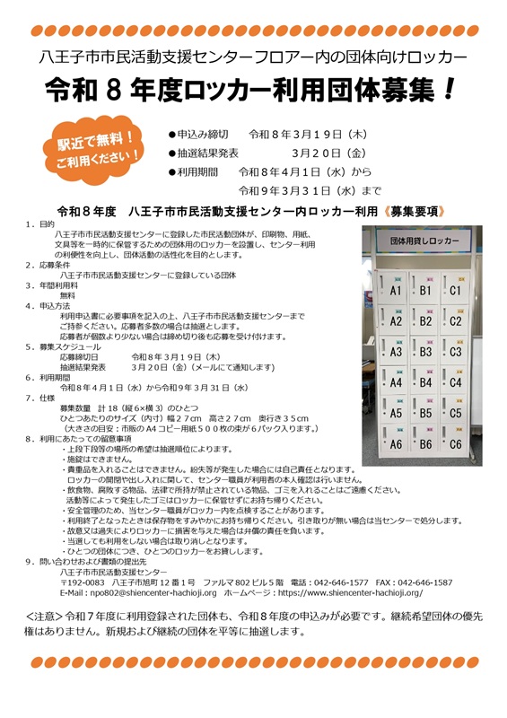 令和8年度 八王子市市民活動支援センター内ロッカー利用
