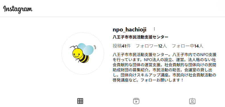 八王子市市民活動支援センターではインスタグラムでも情報発信を開始しました。