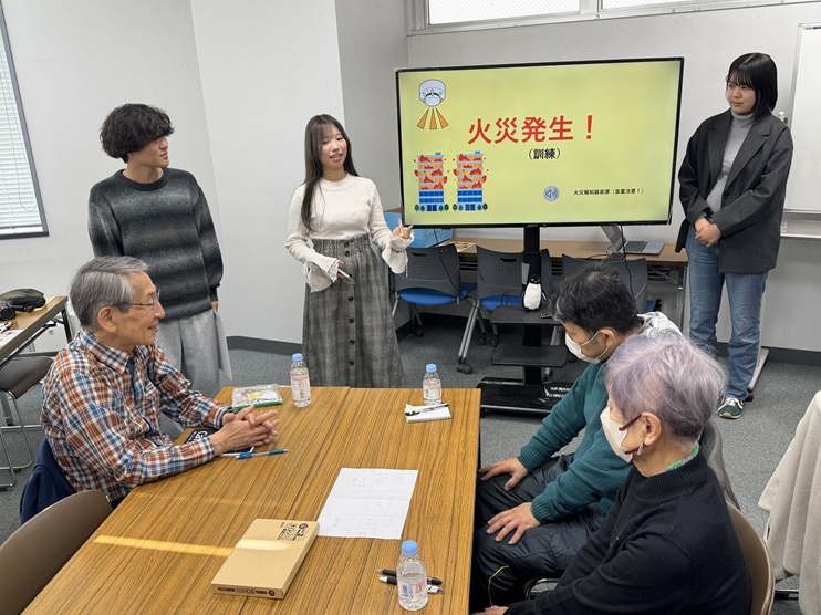 NPO法人国際ボランティア学生協会の学生メンバーが講師となり、避難訓練を含めた、