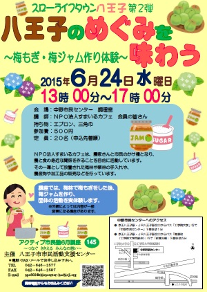 講座では、梅林で梅もぎをした後、梅ジャムを作り、団体の活動を実体験します。