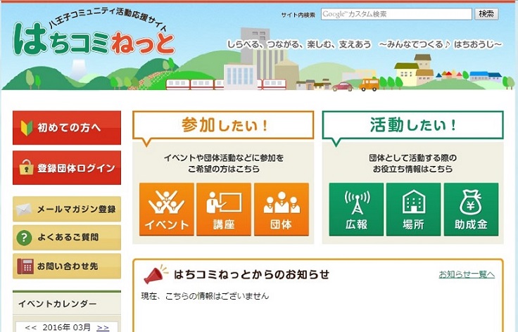 八王子コミュニティ活動応援サイト「はちコミねっと」が本日オープンしました!