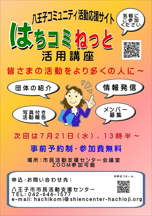 ◆会場:ご自宅 あるいは 八王子市市民活動支援センター