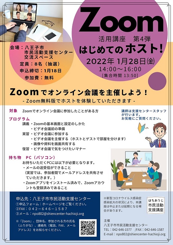 FAX、メールでお申し込みの際は、講座名「Zoom第4弾」、団体名、氏名(ふりが