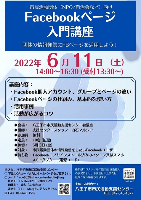 メール又はFAXの場合、件名:「Facebookページ講座」・