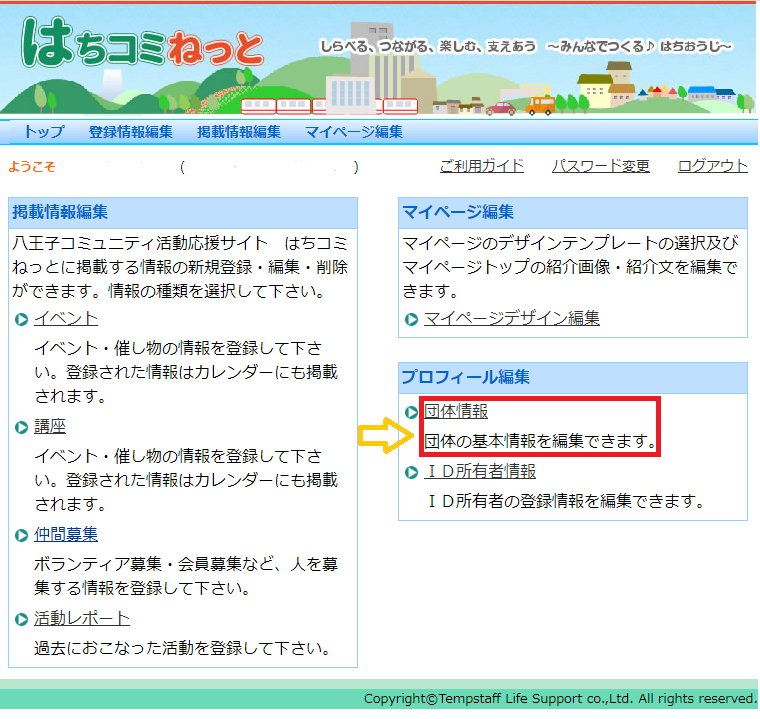 現はちコミねっとで団体情報の変更ができなくなることをお知らせしておりましたが、