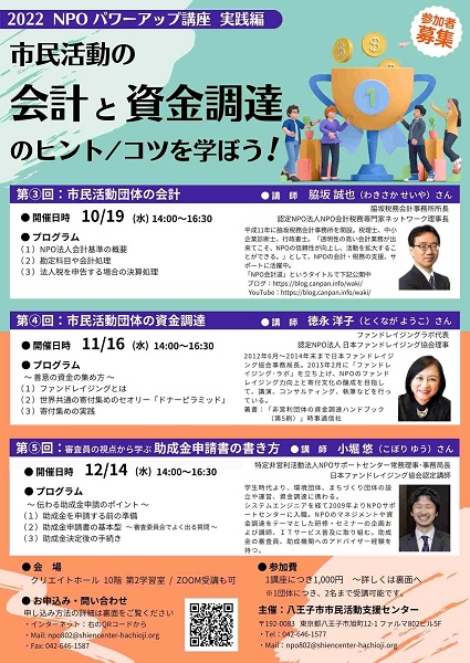 ◆参加費:1講座につき1,000円 ※1団体から2名まで受講可能