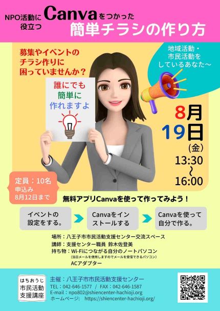 市民活動・地域活動の中で、会員募集やイベント・講座の時に必要となるチラシをより魅力的にかつ簡単にできる方法をお伝えします。