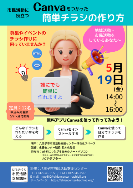 市民活動・地域活動の中で、会員募集やイベント・講座の時に必要となるチラシをより魅力的にかつ簡単にできる方法をお伝えします。