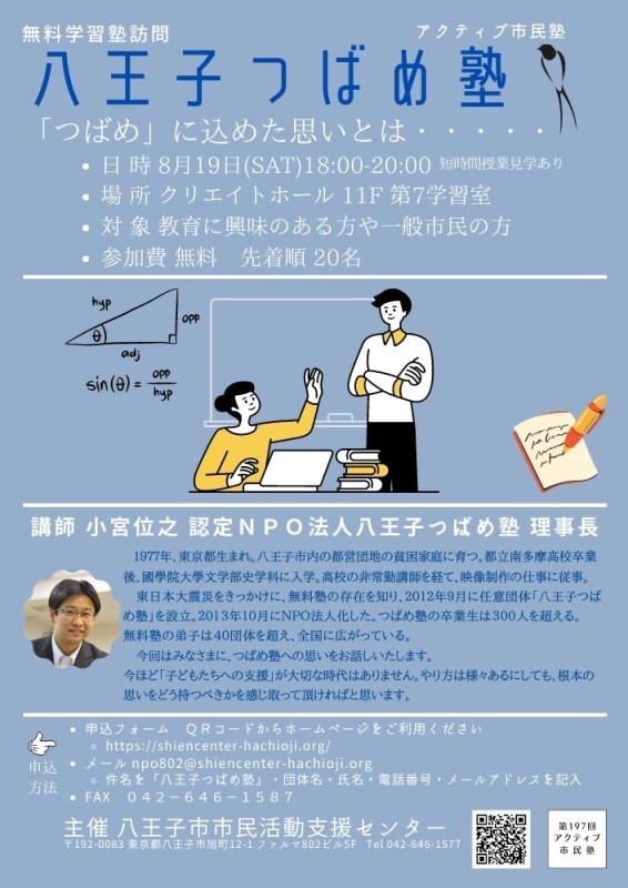 講師 小宮位之 認定NPO法人八王子つばめ塾 理事長