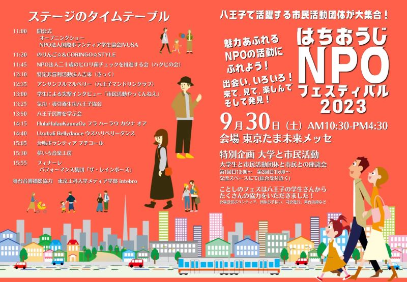 当日は、どうぞご来場いただき、八王子のさまざまな市民活動を、見て、楽しんで、そして発見してください。
