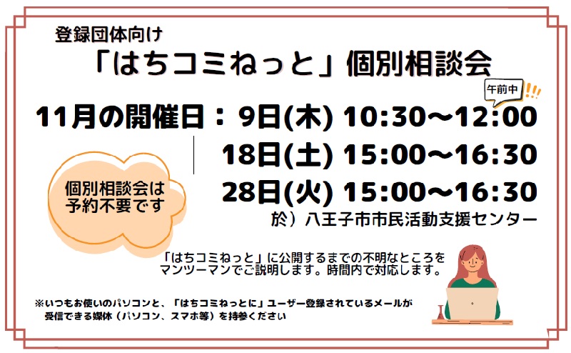 「はちコミねっと」に記事を公開する際に、ご不明なところをマンツーマンでご説明します。
