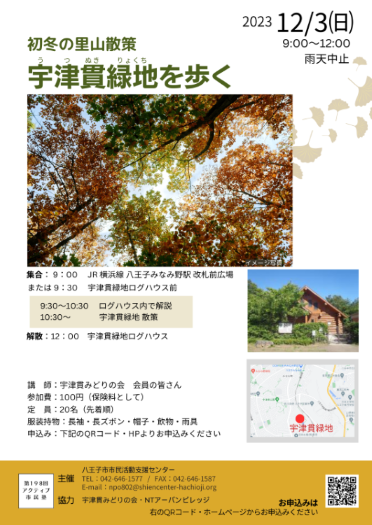 メール又はFAXの場合、件名に「宇津貫緑地を歩く」とし、