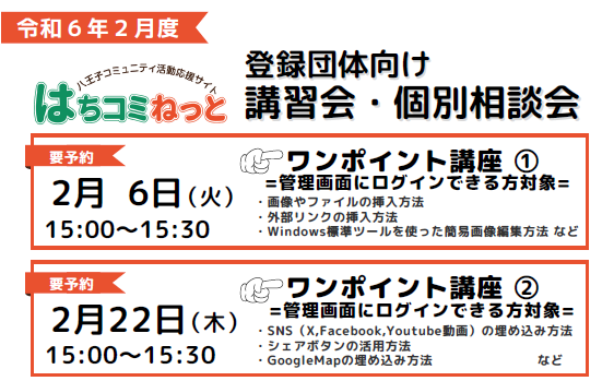 開催場所: 八王子市市民活動支援センター