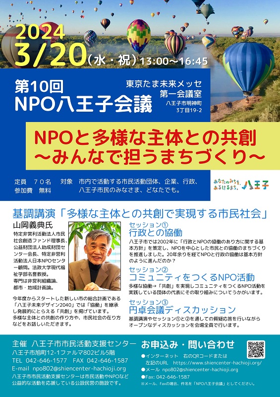対象 市内で活動する市民活動団体、企業、行政、八王子市民のみなさま、どなたでも