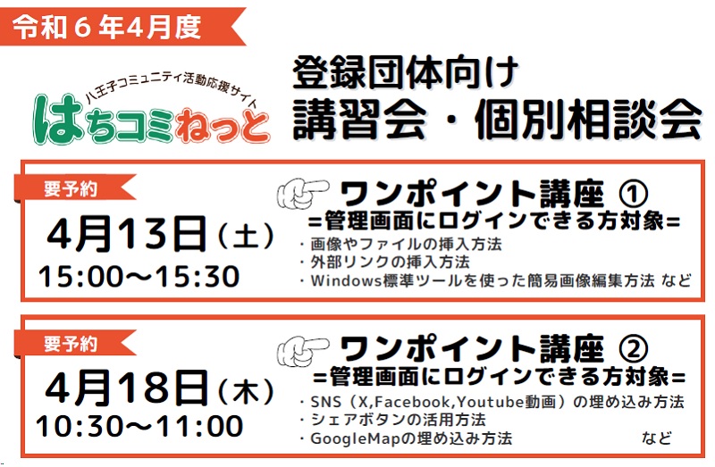 ◆◇◆こちらの講習会は事前にお申し込みをお願いします◆◇◆