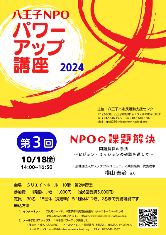 パワーアップ講座は、NPO・市民活動団体が充実した活動を目指すため、団体運営に必要な視点・考え方を学び、組織運営基盤を強くするための連続講座です。