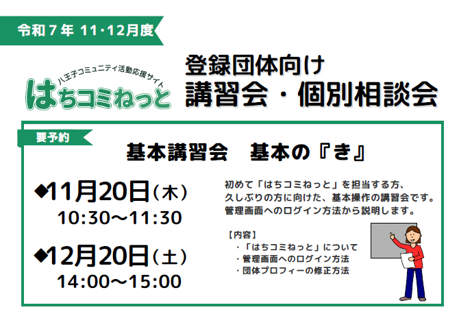 初めて「はちコミねっと」を担当する方、久しぶりの方に向けた基本操作の講習会です。