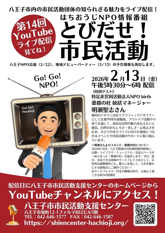 八王子市内の市民活動団体の知られざる魅力をライブ配信!
