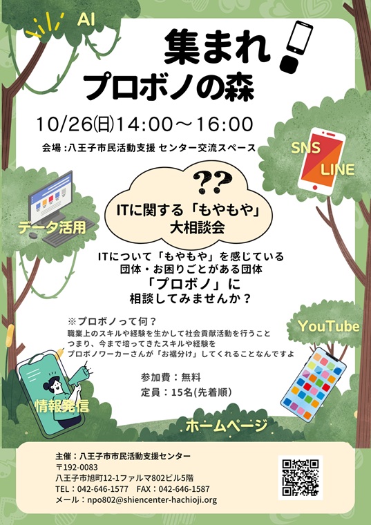 【支援講座】集まれ!プロボノの森 八王子NPO大相談会~IT編~