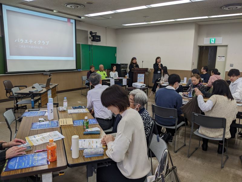 後日、①交流会で情報共有した3団体が別の日に協力の可能性について話し合ったこと;②登壇いただいたバラエティクラブさんの訪問を予約した2団体があった;③同じグループで参加した方々がグループラインを作り、話し合いを続ける;④障がい者支援と国際関係団体がつながり、話し合いをする;⑤2団体は共催イベンを検討すると報告があった。