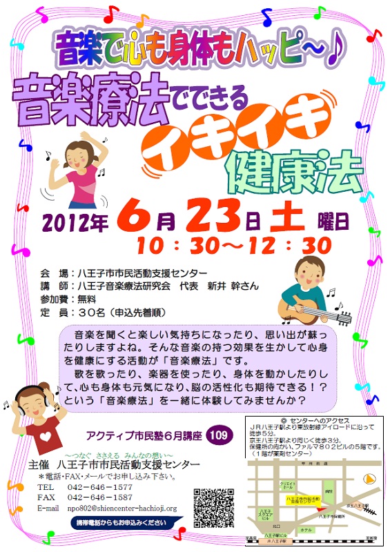 6月のアクティブ市民塾は「八王子音楽療法研究会」さんのご紹介です。