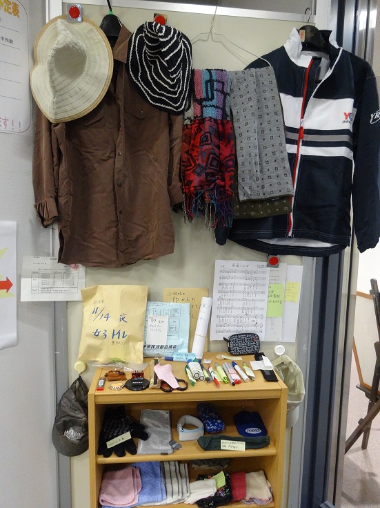 市民活動支援センターでは、昨年、会議室や印刷機等のご利用で来館された方の忘れ物を展示中です。