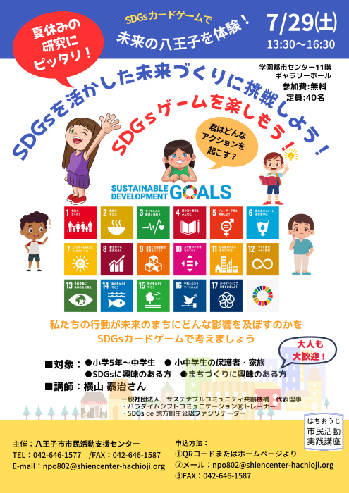 対象:SDGsに興味がある、知りたい、カードゲームに興味がある小学5年生以上の方