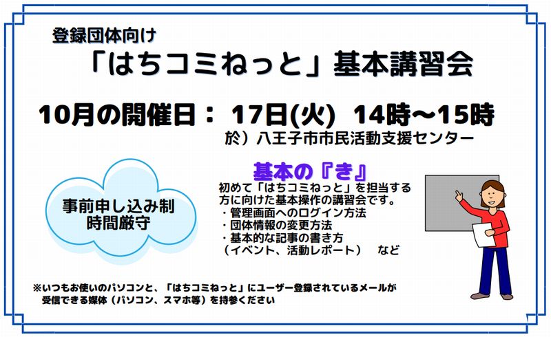 初めて「はちコミねっと」を担当する方に向けた基本操作の講習会です。