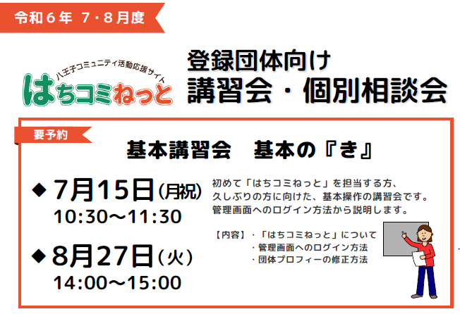 初めて「はちコミねっと」を担当する方、久しぶりの方に向けた基本操作の講習会です。