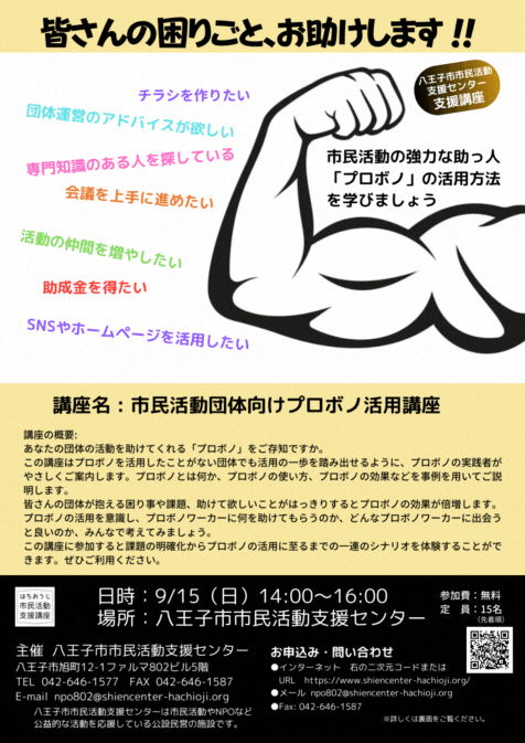 ・メールアドレスをご記入の上、npo802@shiencenter-hachioji.org へ