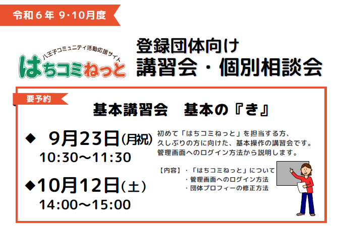 初めて「はちコミねっと」を担当する方、久しぶりの方に向けた基本操作の講習会です。