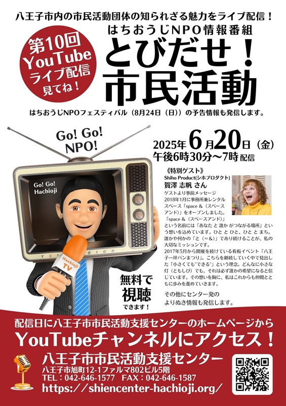 YouTubeライブを使い、八王子市内の市民活動を市民へ伝える情報番組です。
